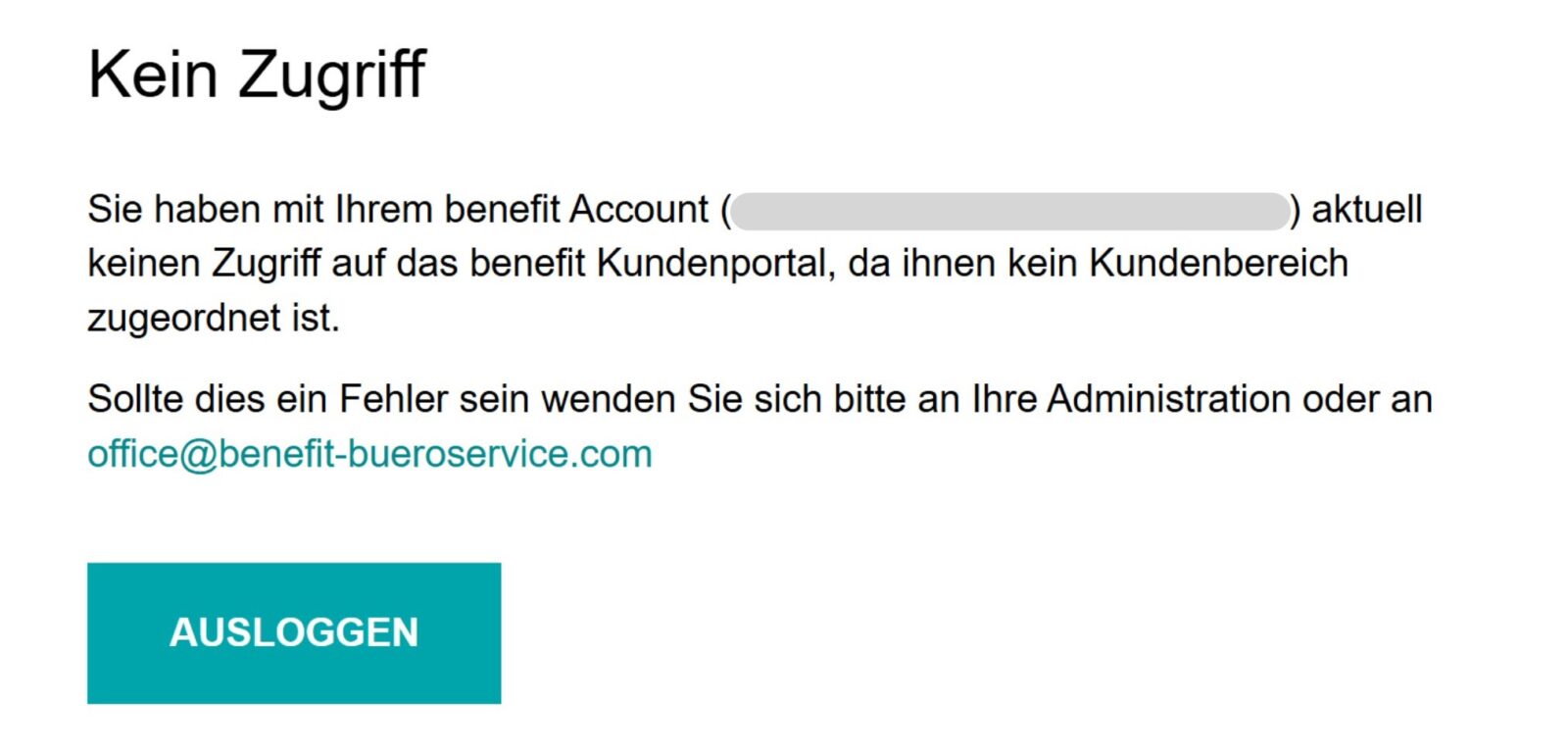 7. Sollten Sie noch keinen benefit Kundenbereich zugeordnet sein, erhalten Sie nach dem Login das Fenster “Kein Zugriff“.