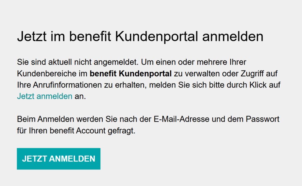2. Es öffnet sich nun die Einladung zu Ihrem benefit Kundenbereich.