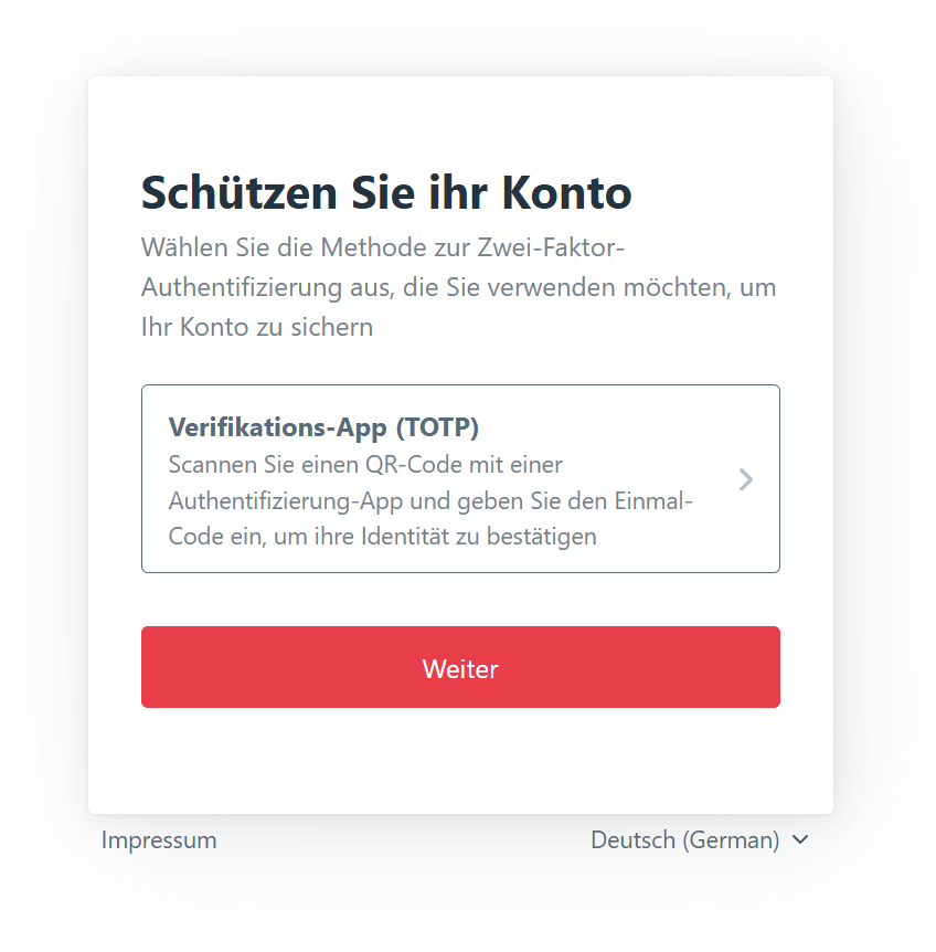 4. Sie können optional Ihren benefit Account mittels Zwei-Faktor-Authentifizierung schützen. Nutzen Sie dafür einfach Ihre bevorzugte Authentifizierungs-App.