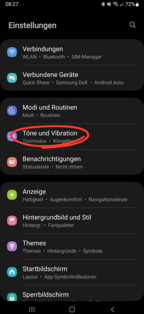- Wählen Sie dort „Töne und Vibration“ aus.