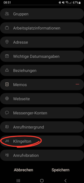 - Suchen Sie den Kontakt, für den Sie einen individuellen Klingelton auswählen möchten.