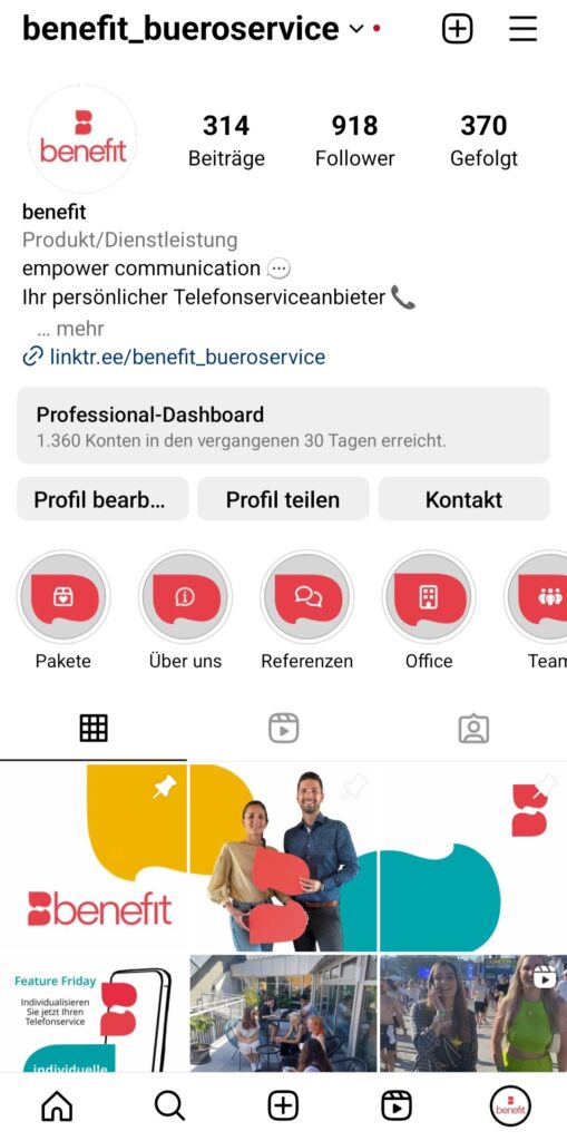 Der Business Account ermöglicht Ihren Follower*innen eine einfachere Kontaktaufnahme per E-Mail oder Telefon, je nachdem welche Kommunikationsmöglichkeit Sie auf Ihrer Startseite zur Verfügung stellen.